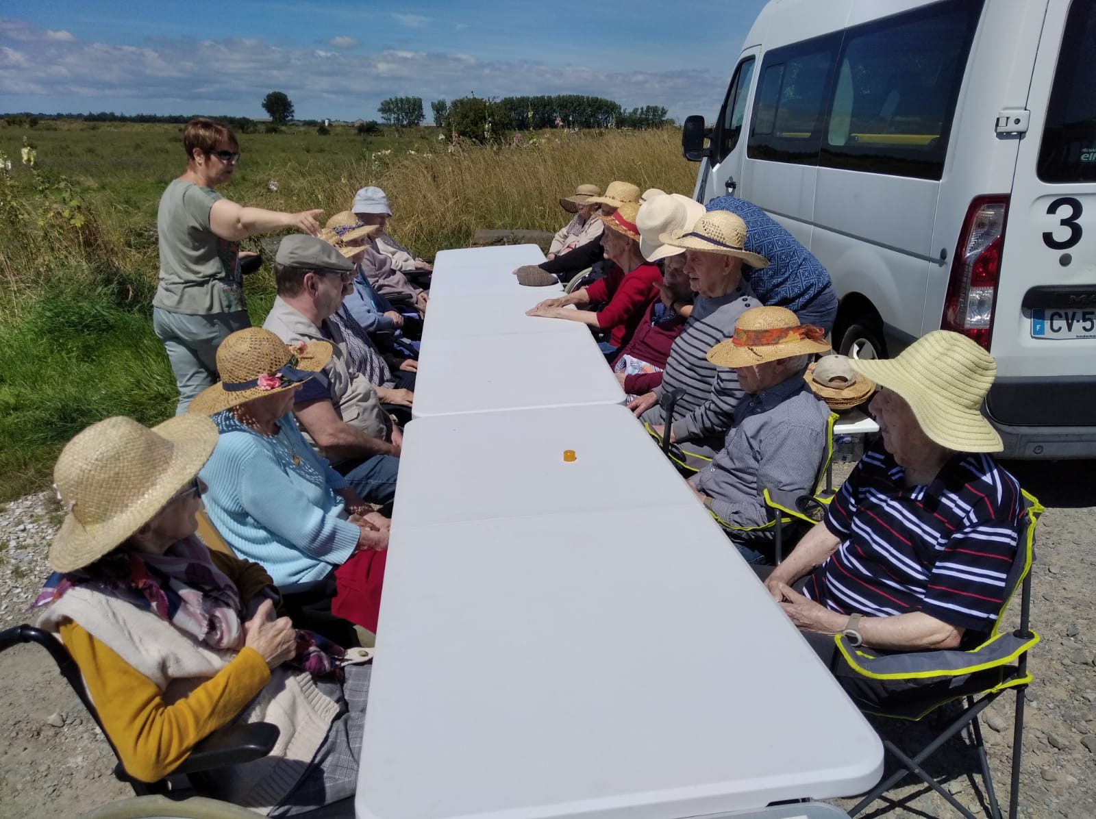 Le mercredi 6 juillet, Aline, Annie et Emilie ont emmené les résidents pique-niquer au bord de l’eau à Isigny-sur-Mer, avant d’aller déguster une excellente glace artisanale aux halles d’Isigny.